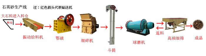 這套生產(chǎn)線有振動給料機、顎式破碎機、細碎機、球磨機、提升機、振動篩和皮帶輸送機等設(shè)備組合而成。